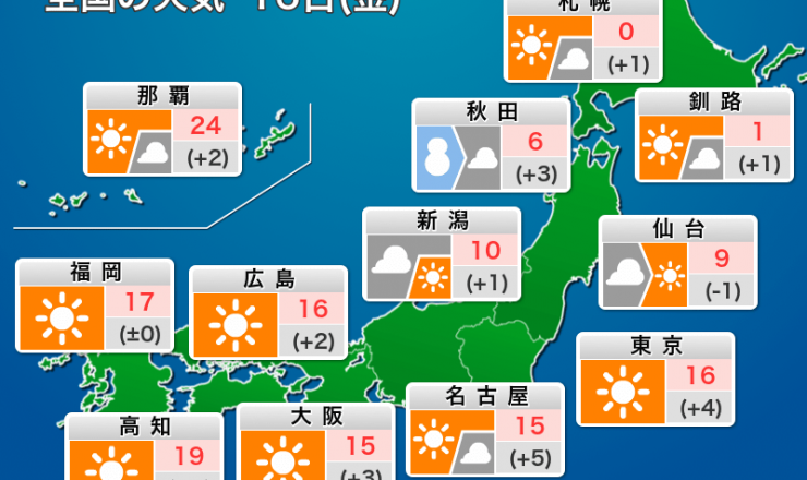 今日16日も、北海道から北陸は気圧の谷の影響を受ける見込みです。北海道は、北部や南西部ほど雲が多く、昼頃から所々で雪が降るでしょう。大気の不安定な状...