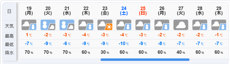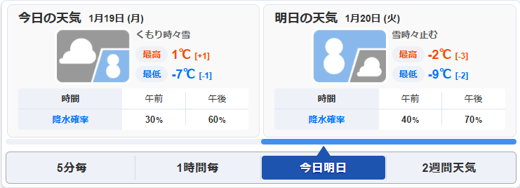 明日以降は気温が最高でもマイナス気温で冷え込みます。また雪も降ったりやんだり…