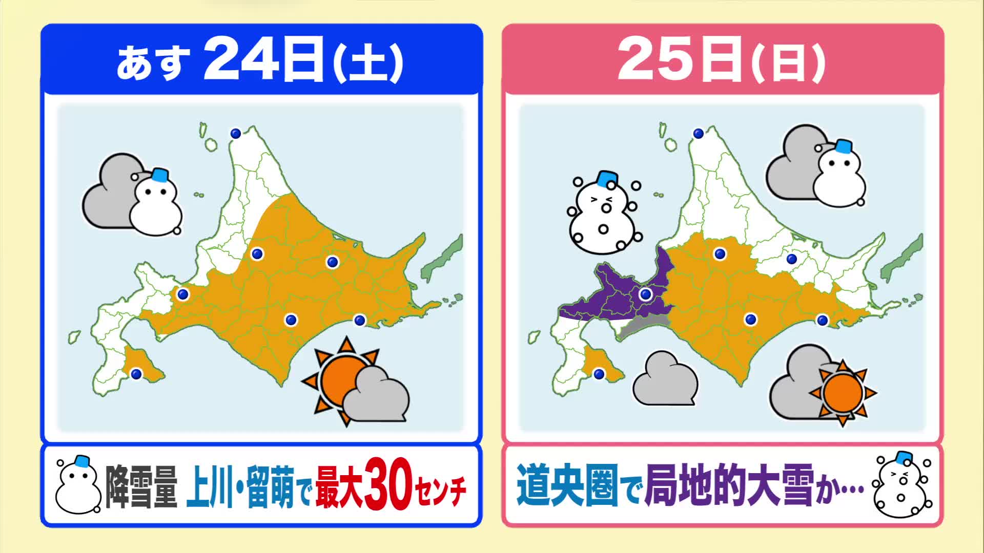 降雪量は上川・留萌地方で最大30センチです。