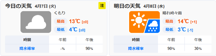 朝方はまだまだ気温が低いですが、週間予報では9日木曜日や来週には日中プラス18度まで気温が上がるそうです。