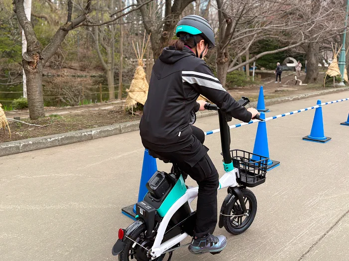 また、4月1日(水)からの自転車への「青切符」適用にあたり、交通ルールへの関心が高まっています。自転車や電動キックボード(特定小型原動機付自転車)の正しい交通ルールを改めてご理解いただく機会を作るため、サービス再開日に安全講習会を実施いたしました。当日は、安全な走行方法のレクチャーに加え、ご利用ガイドブックを配布するなどし、実際にご乗車いただきました。
