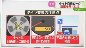 ナットは対角線上で締める…タイヤ交換の注意点 50~100キロ走行目安に点検を!