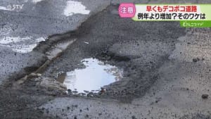(寒地土木研究所 丸山記美雄上席研究員)「雪がとける水の量も多くなってくる。そして寒さとあったかい暖気、そういったものが比較的繰り返し発生している状況にありますですので、ポットホールの発生しやすい条件というのは整っている」