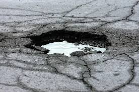 ガタガタと音をたてながら上下に揺れる車。原因は道路にできた大きな穴です。